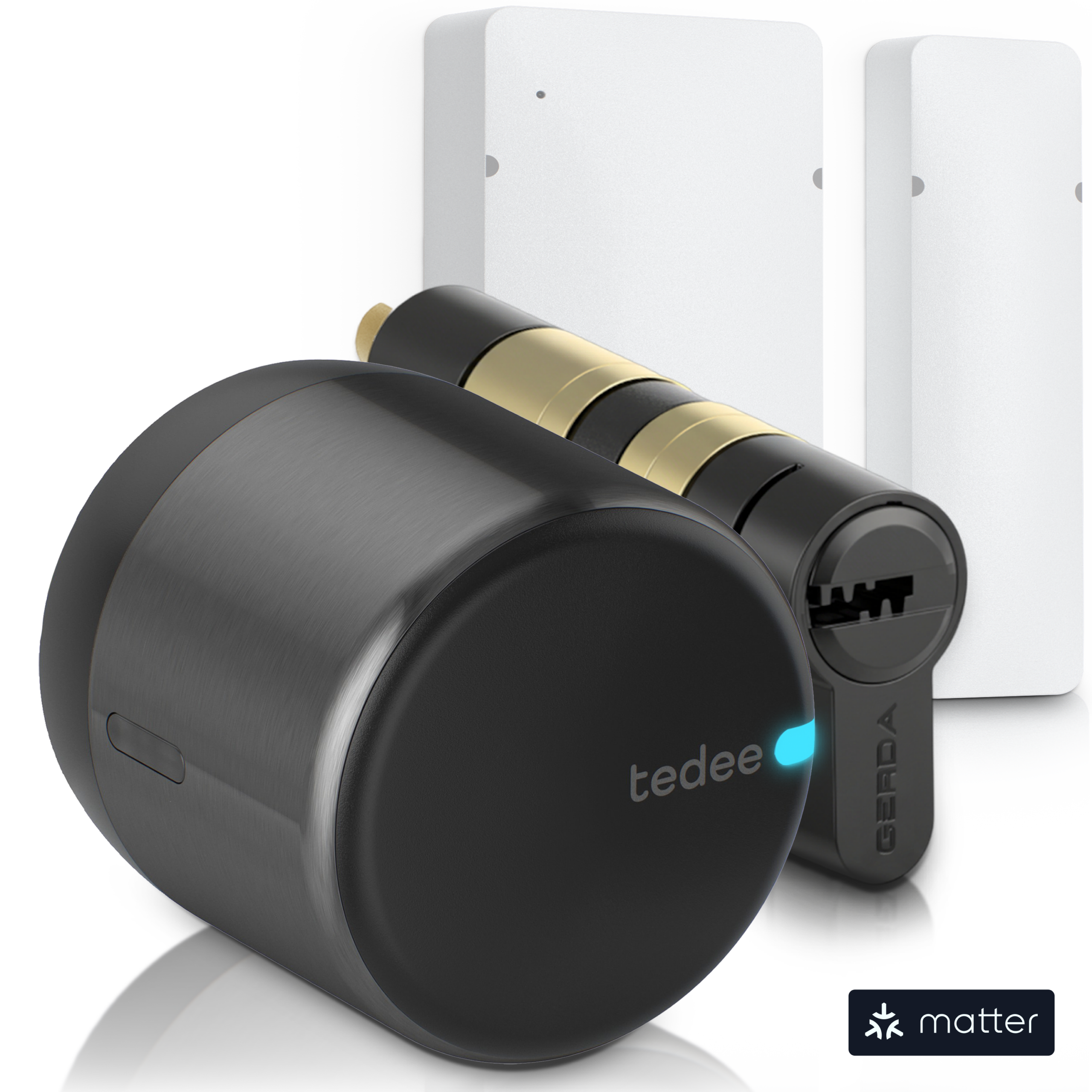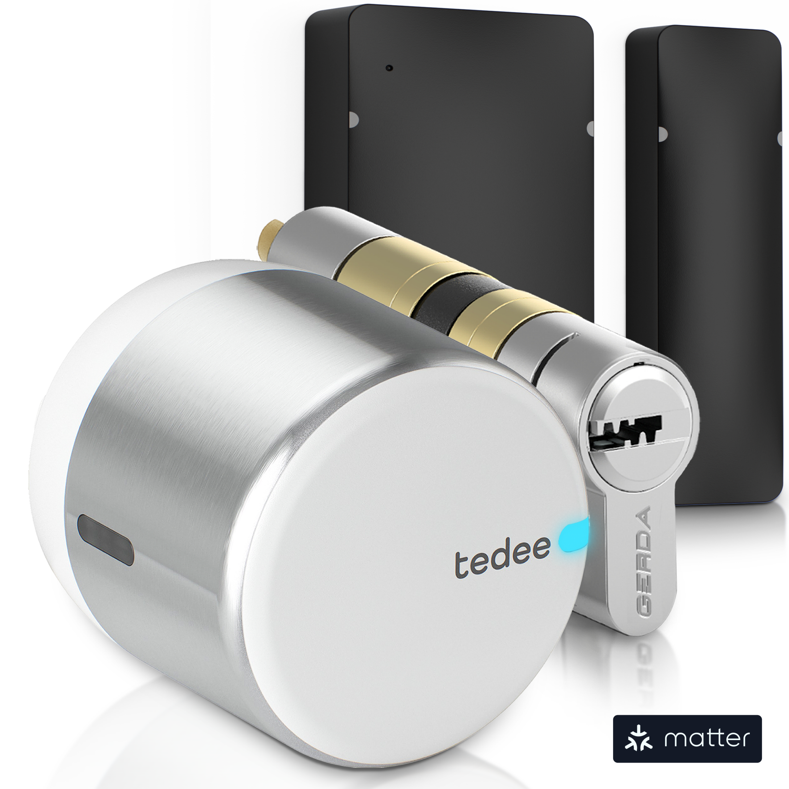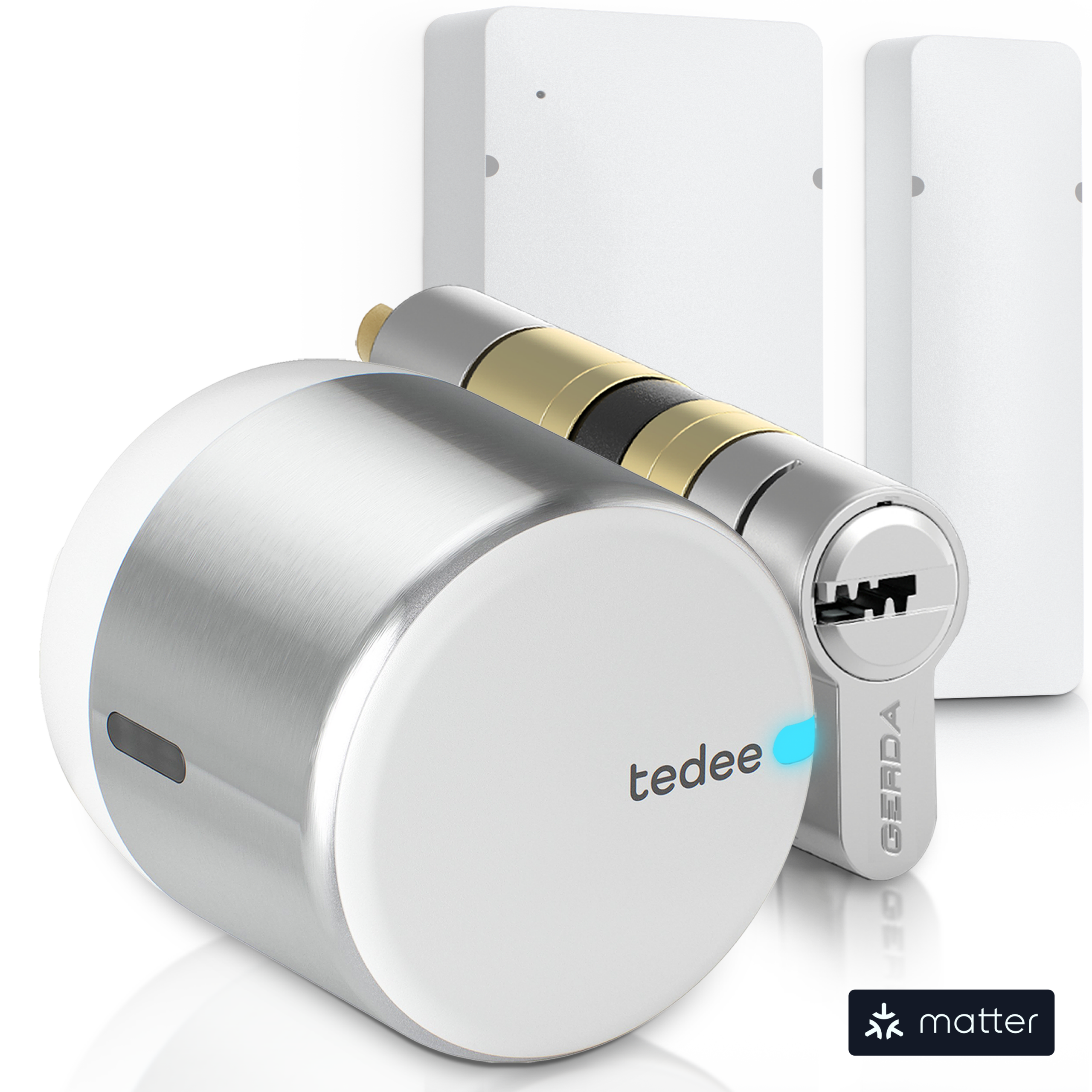 Sørg for problemfri pasform, problemfri drift og certificeret sikkerhed, når du bruger Tedee GO2 med den dedikerede europæiske cylinder, der er inkluderet i dette bundt, sammen med en clip-on Tedee GO2 bar adapter.