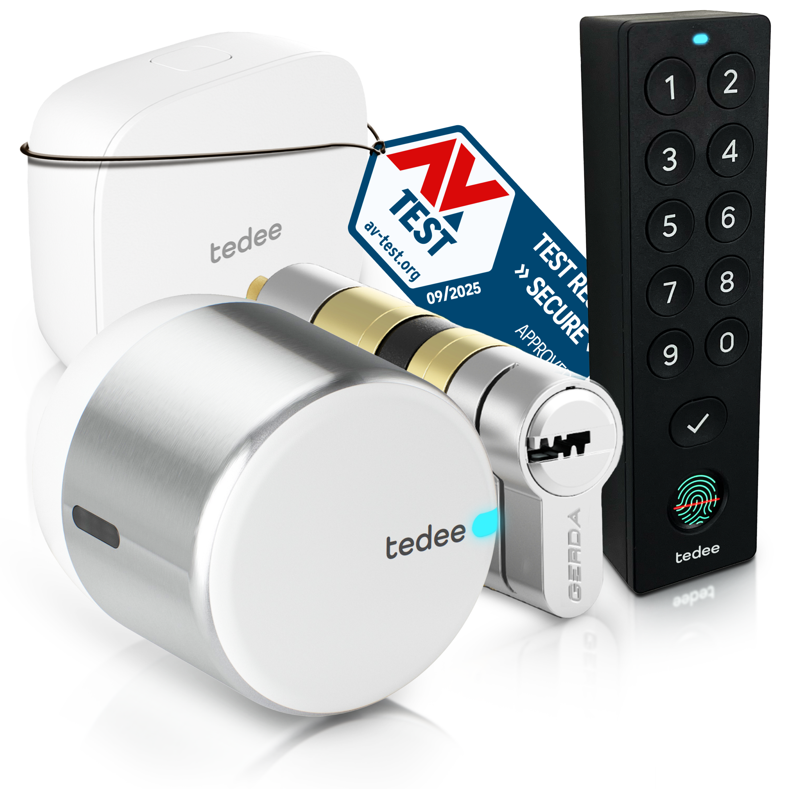 Dall’accesso con smartphone al controllo remoto fino allo sblocco tramite PIN: questo bundle include Tedee GO2, Tedee Bridge e Tedee Keypad PRO, per un’esperienza completamente senza chiavi.