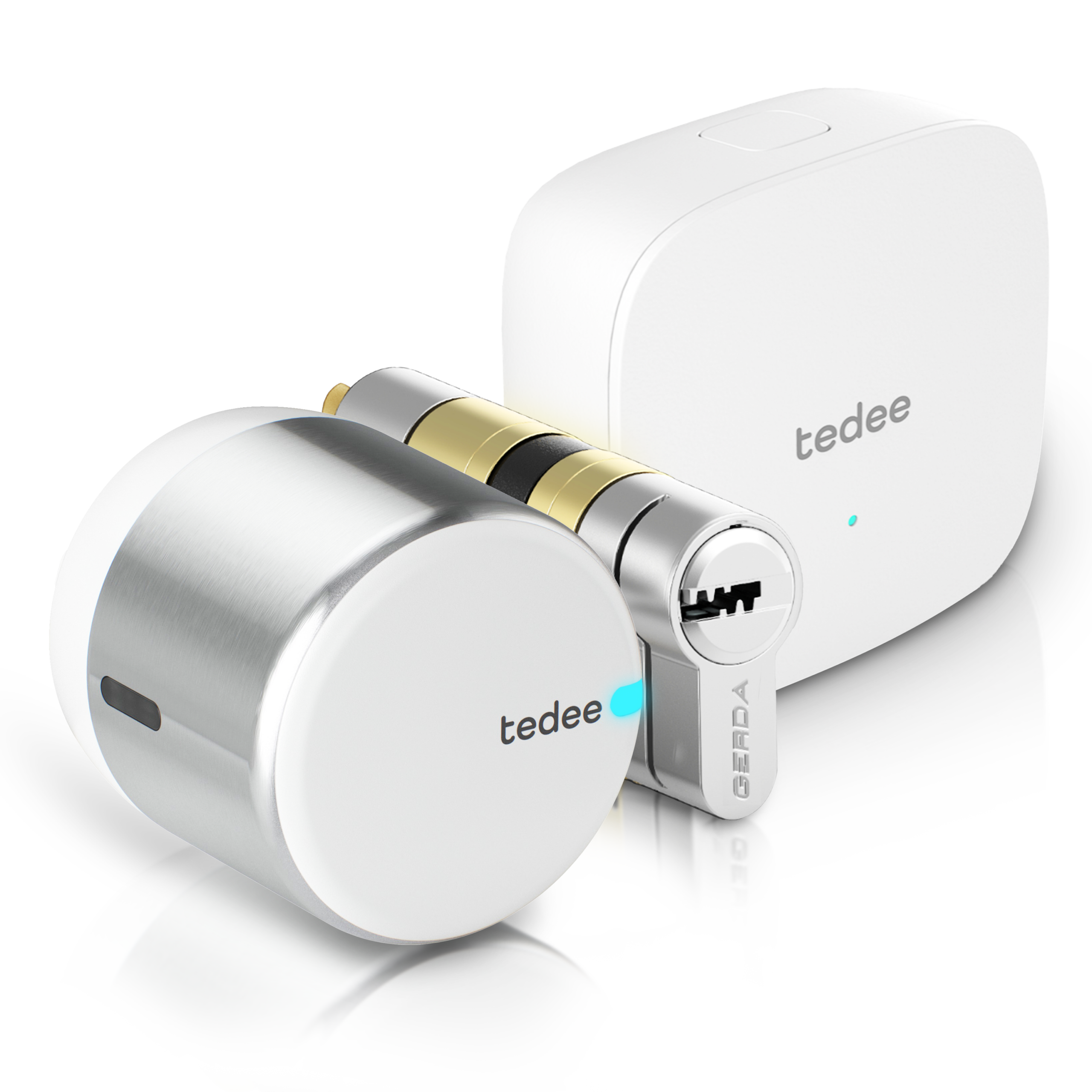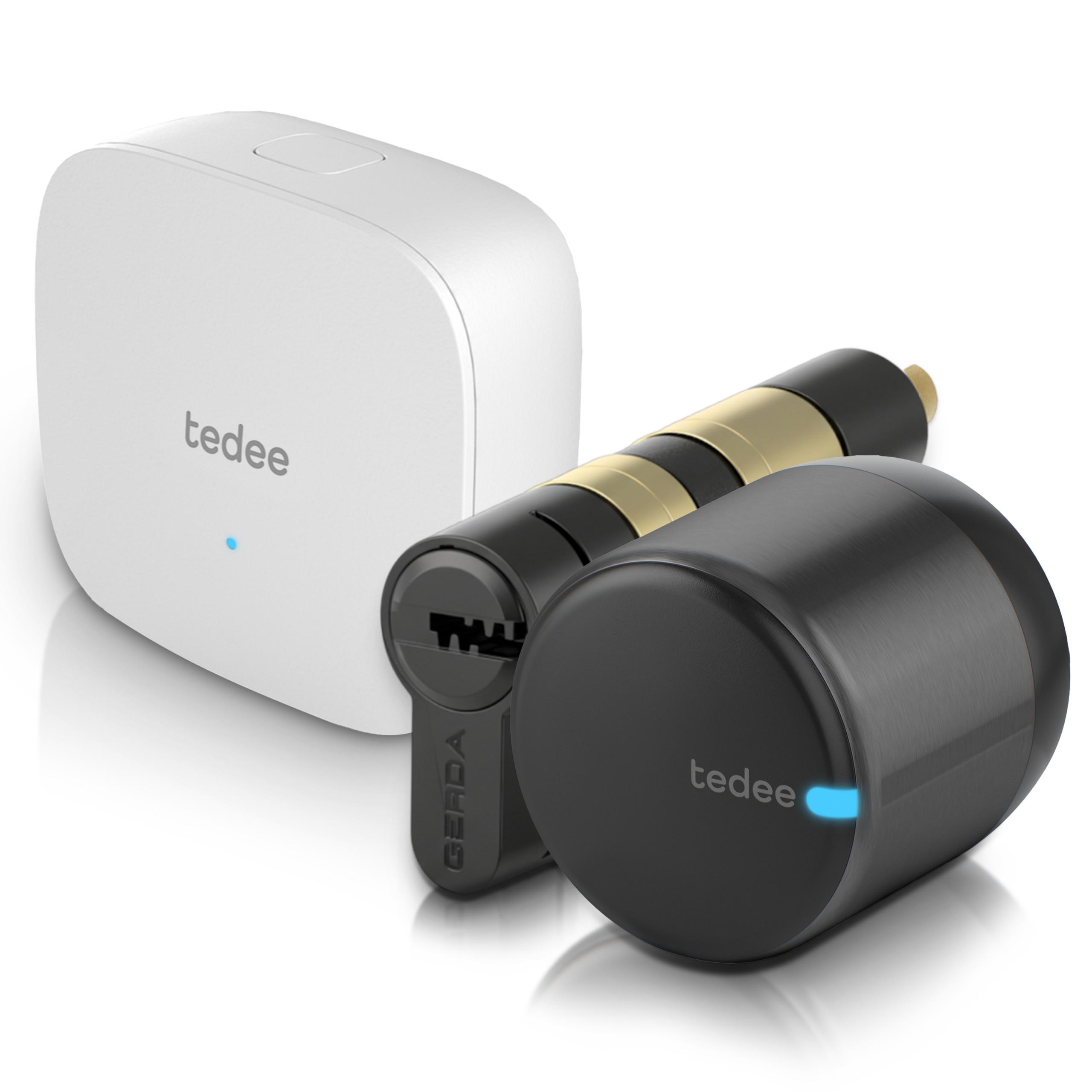 Your easy way to unlock smart lock benefits in minutes. From smartphone entry and remote control to smart home integrations: this bundle includes Tedee GO2 smart lock and Tedee Bridge, bringing advanced smart access features to your door. Ensure seamless fit, smooth operation, and certified security with the dedicated European cylinder included in this bundle, along with a clip-on Tedee GO2 bar adapter.